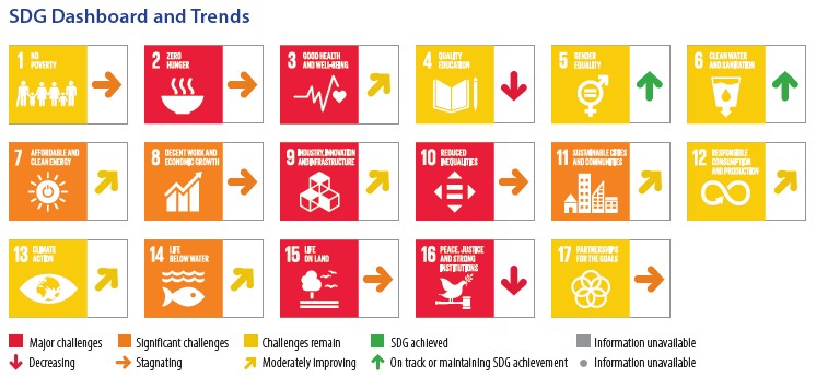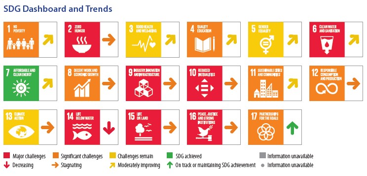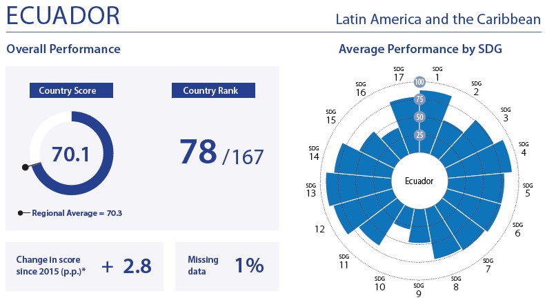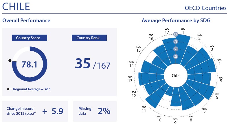 Para conocer los progresos que van alcanzando los países respecto a los 17 ODS, la Red de Soluciones para el Desarrollo Sostenible (SDSN) ha venido elaborando periódicamente Informes de evaluación desde 2016. Su metodología utiliza índices sintéticos, cuyos valores pueden oscilar entre 0, cuando el país se encuentra en la peor situación, y 100, cuando, por el contrario, el país se encuentra en la mejor posición respecto al cumplimiento de los ODS.