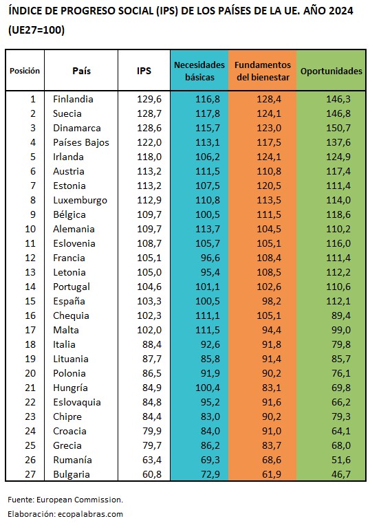 Tras las dos anteriores ediciones de los años 2016 y 2020, los últimos datos del Índice de Progreso Social de la UE son los publicados en el año 2024.
